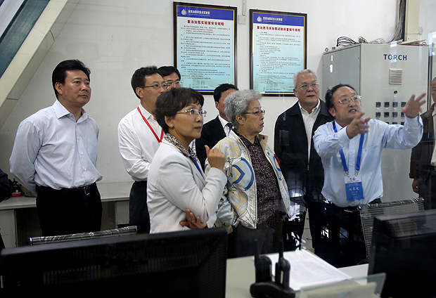 10月4日,参加母校60周年校庆活动的吴仪校友参观了学校实验室和校园。中国石油天然气集团公司董事长、党组书记周吉平,山东省委常委、青岛市委书记李群,学校领导等陪同参观。
