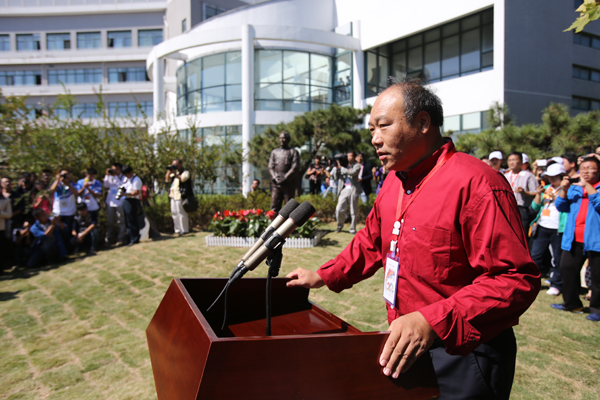 田跃民对塑像的创作进行了介绍。据悉,塑像制作耗时两个多月,高2米,采用铸铜锻造,除了前期和后期由雕刻小组完成以外,其余的创作完全由田跃民亲自完成。