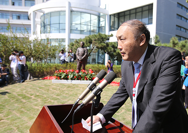 刘珂在讲话中指出,杨光华先生是我国著名的石油化工专家,学成归国后即投身于石油教育事业,和曹本熹等老一辈石油教育家一起创建了中国第一个石油炼制系。杨光华先生是深受石大师生尊敬和爱戴的老校长,从北京石油学院、华东石油学院到石油大学各个时期,杨光华先生站在国家发展的战略高度,怀着高度的责任感、使命感,在有力推动学校建设和中国石油高等教育事业发展方面,做出了一系列卓有成效的探索和研究,为中国石油大学的发展和壮大奠定了坚实基础。杨光华先生用他的一生躬身践行并准确诠释了“实事求是、艰苦奋斗”的校风和“勤奋、严谨、求实、创新”的学风,为了石油教育事业和石油大学的发展鞠躬尽瘁,无怨无悔地贡献了自己的一生,他是老一辈石油教育工作者和老一辈校领导的杰出代表,其精神感人至深,令人敬佩。学校敬立杨光华先生铜像,不仅是为了缅怀先生为学校发展做出的历史性贡献,更是为了传承和弘扬先生忠诚于党的教育事业、艰苦创业、严谨治学的精神。杨先生的人格魅力和学术魅力已成为学校发展的宝贵财富。希望广大师生在杨先生殷殷的目光中,恪尽职守,接力前行,努力把学校办好,多出人才、多出成果、多做贡献。
