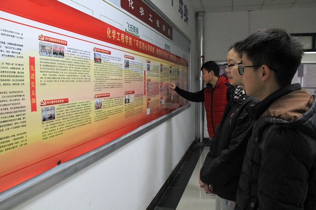 为了继续深化“两学一做”学习教育,充分发挥身边典型的教育激励作用,化学工程学院学生党总支在工科楼A座二楼宣传栏开展“不忘初心讲奉献,继续前行有作为”主题图文展,将一批充分发挥模范带头作用和战斗堡垒作用的学生党员和学生党支部进行展出,激励和鞭策所有党员甘于奉献,勇于担当。