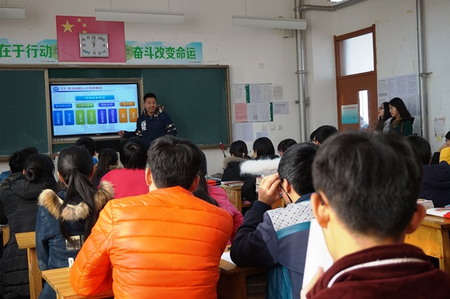 回母校宣讲时,化学工程学院的学生利用寒假假期时间,收集我校详细资料制作精美幻灯片,利用展现石大文化氛围的宣传片、晚会视频等材料宣传我校美丽风光景致、浓厚文化氛围,向母校学生们展示出石大的魅力。