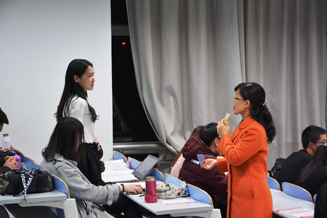 “人生的目的是什么?”讲座开始之前,袁爱军向在场学生提出了这样一个问题。“是为了开心”,“是为了爱家人,爱朋友,爱自己”……现场学生的回答五花八门。带着这样一个问题,袁爱军从人生观、目的和价值方面强调人生的态度应是:用乐观的心态看待世界和生活;保持强烈的进取心,勇于开拓创新;始终胸怀强烈的人生责任感。态度是基础,但现实同样关键。接下来,袁爱军通过2016年毕业生就业具体数据说明了我校当前紧张的就业形势,并针对化工学院女毕业生就业情况进行重点分析。“从近五年女毕业生的毕业流向来看,女大学生出国、升学的比例相对男生较高且逐年增加,而女生的专业对口度相对男生则较低。”最后,她从职业生涯规划的五个问题“你是谁”“你想要什么”“你可以做什么”“什么可以支持你”“你最终可以成为什么”为出发点,讲述具体的实施步骤:①明确目标;②制定详细的行动计划;③了解企业用人的一般规律;④认认真真把每一件小事做好;⑤提升自我附加值,同时她自己作为一名女性,也给全场女生分享了一段话,“女人一定要有五样东西:健健康康的身体,扬在脸上的自信,长在心底的善良,融进血里的骨气,刻进生命里的坚强!”