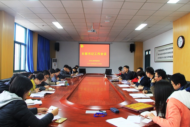 3月29日,化学工程学院在工科楼A座121会议室召开党支部书记工作会,结合学院党委工作要点,布置学院近期党建工作。学院党委书记冯宝鹏、党委副书记王迅、各系(室、中心)党支部书记及全体辅导员参加会议。