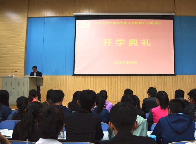 4月16日上午,化学工程学院在南教300举办第九期入党积极分子培训班开学典礼,并邀请学校原党委副书记、纪委书记纪效田为学生讲授了党校第一课《党的宗旨》。化学工程学院党委副书记王迅、团委书记徐光辉以及全体辅导员参加。