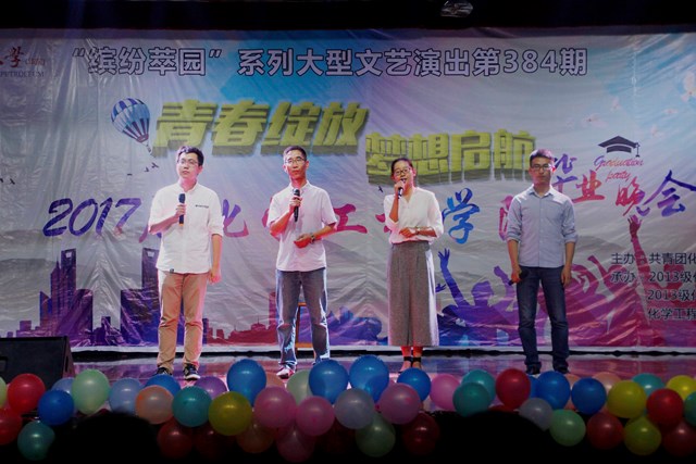 四年青春终绽放,缤纷梦想待启航。6月18日晚,化学工程学院“青春绽放,梦想启航”2017届毕业晚会在唐岛湾多功能厅隆重举行。学校学生就业指导中心主任赵放辉、化学工程学院党委书记冯宝鹏以及学院各系室教师、班主任、辅导员应邀出席。
