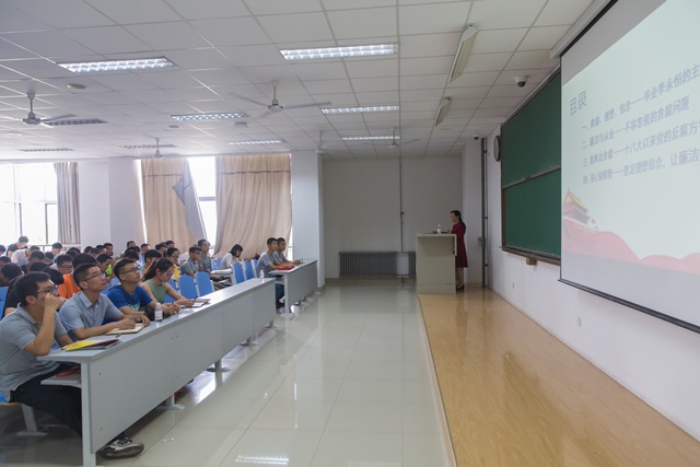 出征仪式结束后,梁秀萍老师为学院全体毕业生党员作了以《让廉洁护航人生》为题的廉洁从业教育讲座,从“廉洁与从业”、“坚定信念,不忘初心,让廉洁为人生护航”、“十八大以来党的反腐方针、治腐成效”、“反腐与经济发展”四个方面,结合热播电视剧《人民的名义》、现实生活中的贪腐案例对毕业生党员“如何廉洁从业,做合格共产党员”进行了教育。她希望毕业生党员能够“坚定理想信念,不忘初心,永葆共产党员的政治本色;严以修身,正确对待权力、金钱、地位;遵规守纪,心存敬畏,践行高标准守住最底线;算好人生七笔账”。