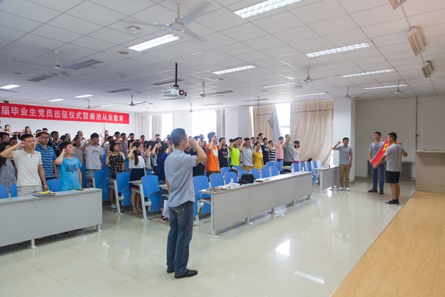 6月19日下午,化学工程学院毕业生党员出征仪式暨廉洁从业教育讲座在南教209举行,仪式由学院毕业班辅导员郭孟主持,纪委办公室副主任、监察处副处长梁秀萍和学院党委副书记王迅应邀出席。