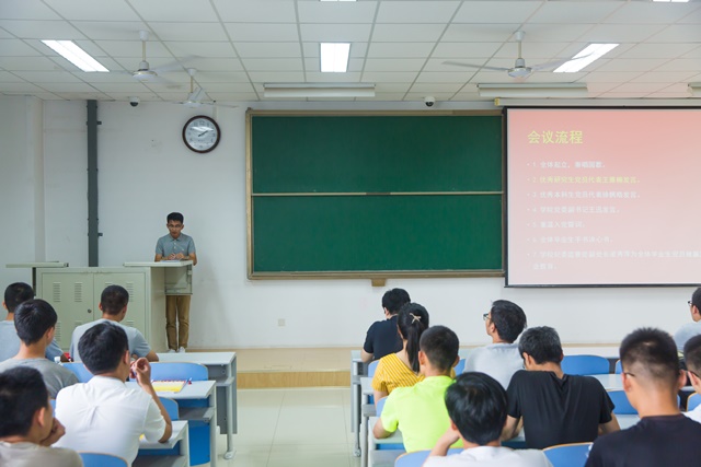 会议伊始全体师生奏唱国歌,拉开了仪式的序幕。毕业生党员代表王雅楠和徐枫皓分别代表2017届研究生和本科生毕业党员发言,他们表达了对学校、学院培养的感谢,并承诺在今后的工作和学习中,发挥好党员的先锋模范作用,不忘党员使命,争先创优,不负学院对自己的期望。