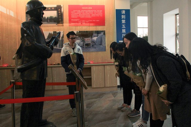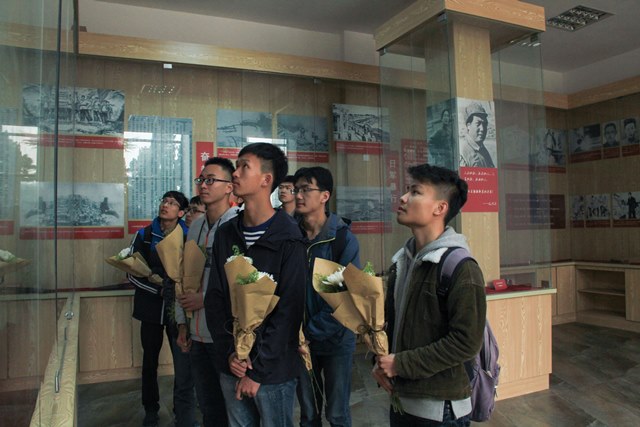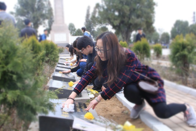 在庄严的烈士纪念碑前,同学们敬献鲜花,集体默哀,以此寄托对革命烈士的深深敬意和无限哀思。革命纪念馆里展示着从抗战到改革开放时期,部分牺牲烈士的遗物以及他们的英勇事迹。从抛头颅、洒热血的无名烈士到为人民生命财产安全献出生命的救火英雄杨波,无一不让大家动容。在参观学习革命英烈感人事迹后,同学们来到革命烈士的墓碑前,为他们献上鲜花,扫墓拭碑,缅怀革命先烈,弘扬革命精神。