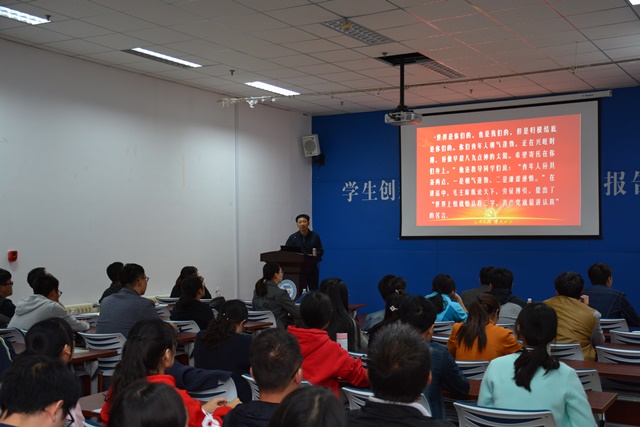 10月11日,化学工程学院在大学生创新实验中心报告厅举行“化蕴先锋跟党走,青春喜迎十九大”党员入学教育活动,学院党委书记冯宝鹏为新生党员讲授题为《与时代同行,做青年先锋》的党课。学院党委副书记王迅、全体辅导员、学生党支部书记以及2017级研究生党员参加了活动。