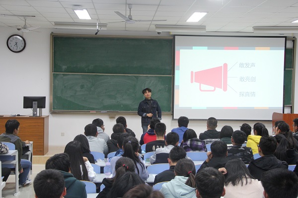 课程伊始,袁俊聪鼓励大家敢做舆论的正能量,在学生工作中学习焦裕禄精神,学习他的公仆精神、创新精神、大无畏精神,并为大家分析了近期工作中出现的问题,提出了解决方法。课程期间,他以幽默的语言、丰富的举例向大家阐述了国际社会网络意识形态的现状,提醒学生干部时刻注意自己的言论,不传谣、不信谣,对抹黑革命先烈的历史虚无主义言论“零容忍”。接下来,袁俊聪提出了“敢发声,敢亮剑,探真情”的工作期望,要求学生干部做好“十条工作法”,如总结工作、搞好团结、了解群众思想等。期间,他特别强调了“做斗士,不做绅士,主动引导舆论方向”思想,并从三个大的方面梳理了网络舆论引导的原因、网络意识形态斗争的现状以及大学生在舆情引导中的定位与关键作用。课程最后,袁俊聪教导同学们深入思考,提高工作效率,在工作中努力专注,真正成为一名实干主义学生干部。