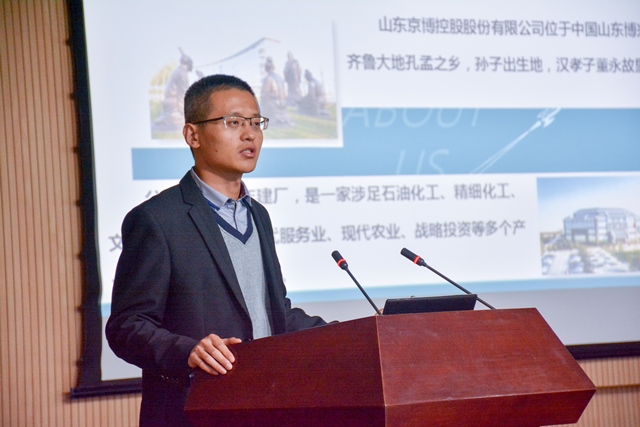 宣讲会现场京博控股总经理办公室经理靳继超介绍公司情况 李博一摄影