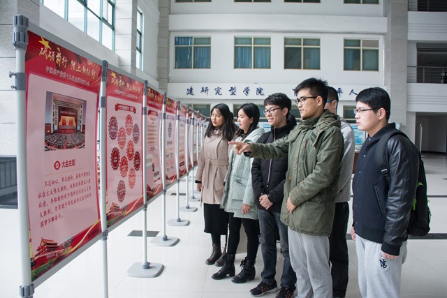 为进一步引导师生学习贯彻党的十九大精神,推动师生在学懂弄通做实上下功夫,近日,化学工程学院党委在工科楼A座大厅举办“学习贯彻党的十九大精神”主题图文展,全面展示了中国共产党第十九次全国代表大会作出的各项决策部署、取得的各项成果,吸引了众多师生驻足观看、学习。