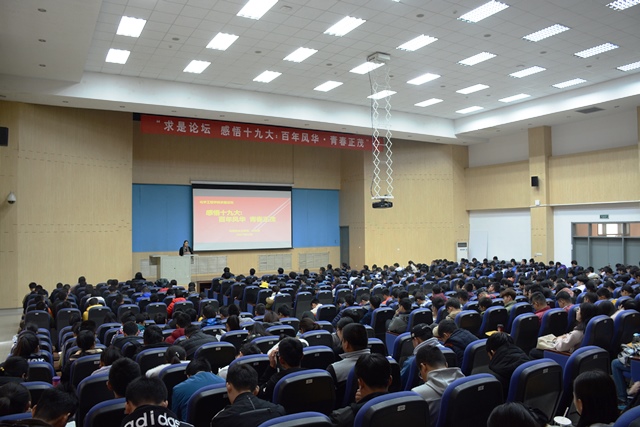 “中国共产党立志于中华民族千秋伟业,百年恰是风华正茂!”宋海儆教授通过习近平总书记在10月25日同中外记者见面会上发表的讲话引出讲座主题“百年风华青春正茂”,从“不忘初心牢记使命永远奋斗”、“新时代新思想新征程”、“恰同学少年青春共筑中国梦”三个篇章为现场师生解读了党的十九大精神,并分享了自己的学习感悟和思考。