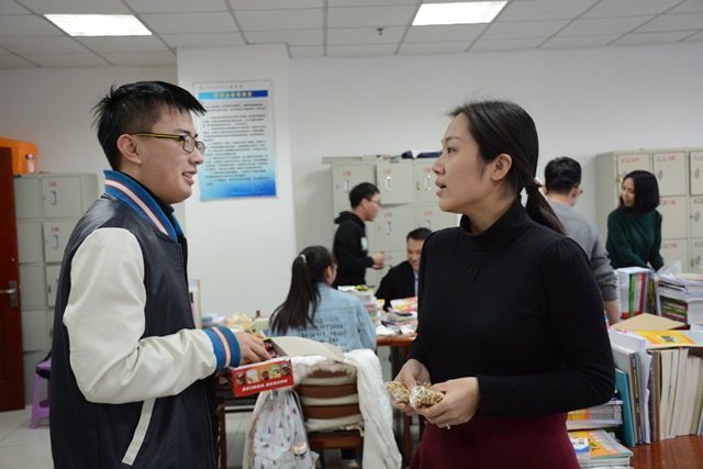 12月8日下午,在全国硕士研究生入学考试即将来临之际,学院2018届毕业班辅导员杨一帆、刘伟前往看望正在备战的考研学生,对正在努力复习积极迎考的学生致以深切的问候并送上精心制作的小礼物及营养品。