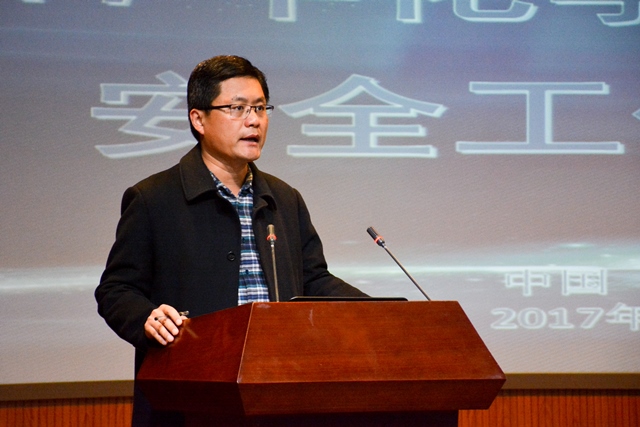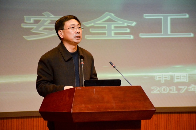 接着,化工学院院长杨朝合发表讲话,他将安全理念分为技术安全、安全管理、安全意识三个层次,并指出,在教学楼、实验室配置等方面已经达到技术安全的基础上,师生必须提高安全意识,由被动“要求安全”转变为主动“我要安全”,学院各单位必须对两份文件执行到位,进一步落实安全管理要求。发言最后,他从党建工作、队伍建设、人才培养、科研成就、国际交流等方面对2017年学院工作进行总结。