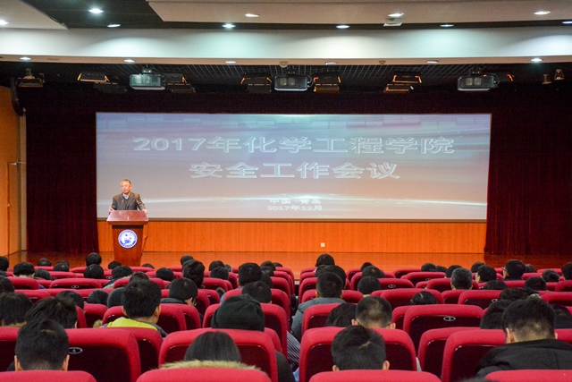 为了牢固树立安全理念,强化安全责任意识,遏制安全事故发生,确保各项工作安全有序进行,12月28日,化学工程学院在逸夫楼报告厅召开2017年安全工作会议。会议由化工学院党委书记冯宝鹏主持,学校办公室副主任徐悦伟、保卫处副处长冷青峰、国有资产与实验室管理处副处长成宏涛、化工学院全体教师及2017级全体研究生参加。