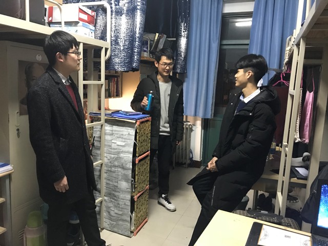 辅导员在学生宿舍与学生交流新学期规划