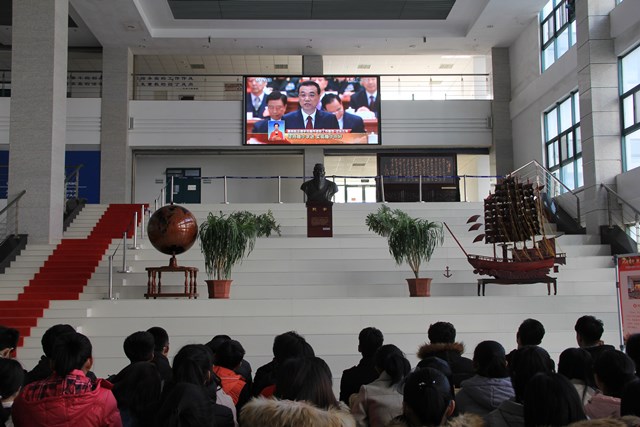 学院师生观看十三届全国人大一次会议开幕会 魏孟吉摄影