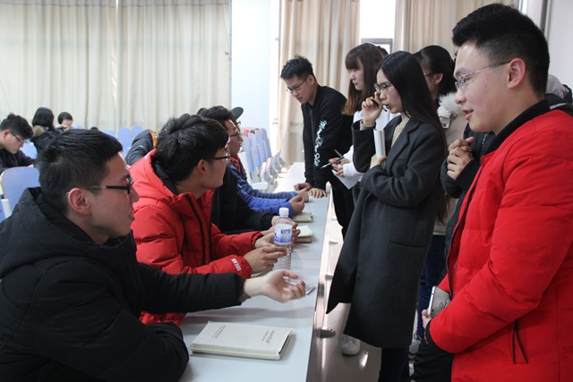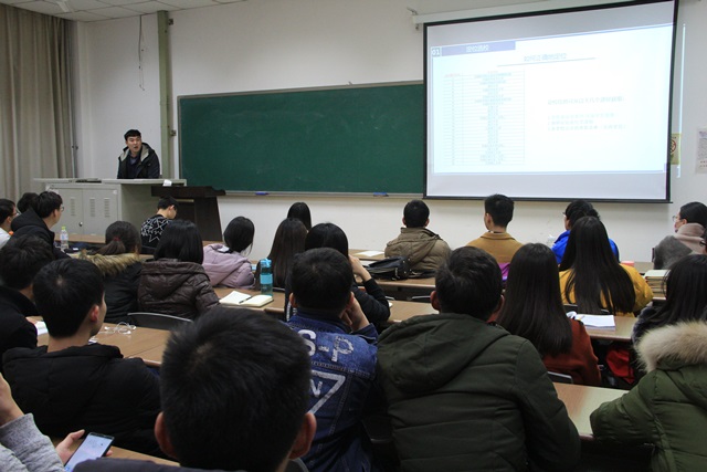在交流会上,2014级学长们首先分别介绍了各自保研的经历。第一位开讲的是保研至中国科学技术大学的陈林杰。本校就读期间,他专业排名第九,并同时获得了四个导师的offer。陈林杰逻辑严谨、条理分明地为与会同学介绍了保研要求,并从宏观上依照时间顺序讲解了整个保研流程,同时列举了大学期间对于保研有益的所有大型赛事。之后,同样保研于中国科技大学的史天详尽地分享了导师选择的技巧。他以自身的夏令营经历为例,生动地展示了如何成功获得中科大院士保研资格的经验。保研于清华大学的江治宇、本校的梁保强、上海交通大学的黄松、西安交通大学的李胜、中国科学技术大学的高大统、天津大学的王鑫鑫以及华东理工大学的魏琦也分别结合自己的保研经历进行了介绍和建议。