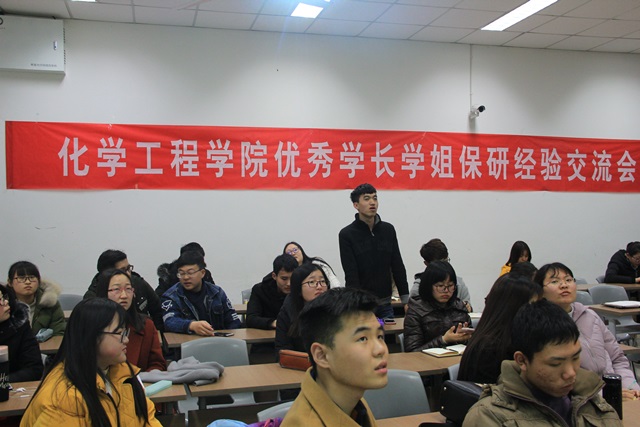 为帮助学院2015级学生了解保研的准备过程及注意事项,3月9日、10日,化学工程学院2015级应控学联分别举办了应用化学专业及过程装备与控制工程专业“保研经验交流会”。会议邀请了学院2014级优秀保研学生史天、江治宇、陈林杰、梁保强、王鑫鑫、黄松、李胜、高大统、魏琦担任嘉宾,就保研流程、定位院校、导师选择等多个方面分享他们的保研经验,为到场的同学们答疑解惑。2015级辅导员薛慧与2015级近100名学生参会。