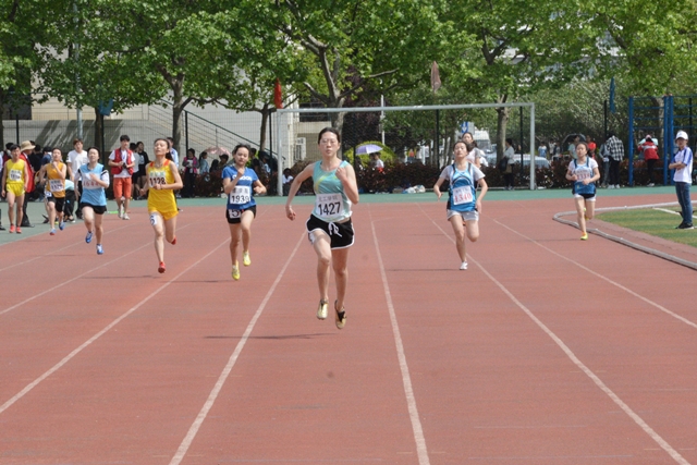 全运同学代表学院领学生甲组女子团体第一名奖杯(中间)