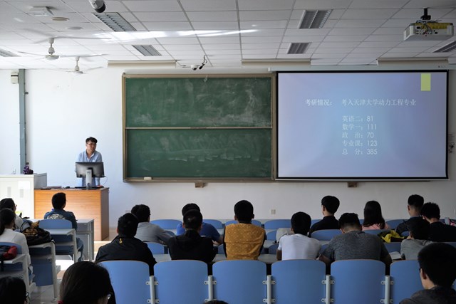 会议伊始,学长学姐们向在座同学进行自我介绍,王威和李若萌就考研学校和专业的选择及考研复习方法等问题做出详细讲解,同时告诉同学们院校和专业的选择要综合自身实力及未来工作做出选择。关于考研的复习方法,学长与学姐分别从数学、英语、政治、专业四个方面分析,给出了相应的建议,并给同学们分享了面试和复试的一些小技巧,使同学们对这方面有进一步了解。鲁佩芳根据自己的考研经历给同学们提出了一些建议,她认为考研复习一定要有自制力,合理安排时间,劳逸结合,提高效率。