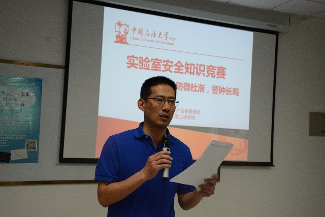5月25日,yl6809永利检测中心第一届实验室安全知识竞赛决赛在综合实验楼A506顺利举行。本次竞赛由国有资产设备管理处联合化学工程学院举办。国有资产设备管理处副处长成宏涛、化学工程学院副院长刘义、化学工程学院研究生辅导员郭孟、国有资产设备管理处张娟担任评委并点评。经过初赛的选拔,共有来自各个学院的十支队伍参加决赛。