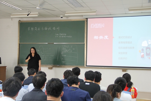在第二部分,窦雅琴详细地给学生们介绍了简历制作的步骤。“其实很简单,就是耐心。”她这样说道。研究招聘启事,分析显性与隐性需求,按照招聘要求整理自己的匹配技能,然后制写简历。步骤虽短,窦雅琴在每一步都做了展开具体的指导。窦雅琴还总结出了八个关键词——独家定制、职业范儿、胜任、相关度、程序化、STAR法则、信服力以及细节,帮助同学们抓住重点。“人家公司为什么要你?你得有专业的背景想过经历去说服人家,”窦雅琴用深入浅出的语言与大家分享着。“窦老师的讲解真的太实用了,刚好解决了我目前的很多困惑,”来自化工1510班的何建文感觉受益匪浅,“这对于即将大四的我们来说,真的是一个很好的机会提升就业技巧。”
