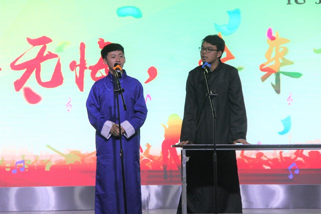 青春是那些挑灯夜读的时光,是那些无话不谈的岁月,演出在房克昌、何建文演唱的歌曲《怀念青春》中拉开序幕。在第一篇章“忆昔·怀念”中,相声《白蛇传》和舞蹈《我的新衣》相继上演,相声俏皮,舞蹈活跃,解庆宁、王瑜唠着西湖断桥上白娘娘的“嗑”,张子谨等则活力十足的随声律动。在第二篇章“成长·奋进”中,宋凯亮等献上歌曲《青春纪念册》,秦志川、王馨语等用魔术创造了一个《魔幻世界》,贾超洋、钱晨和李佳汶的吉他弹唱《那些年》,展现了毕业生青春的泪水、奋斗的足迹。在第三篇章“感恩·祝福”中,2014级党员朗诵了自编诗《花开一世界》:作为党员,永不可丢弃的品质是什么?学无止境,两袖清风,为人民服务!要无止境学,去探索、去发现、去提升,优秀的自己才能更好的服务他人;装控1408班通过一首合唱《送别》,为演出画下圆满句点。此外,演出过程中还有抽奖和互动小游戏等环境,14级辅导员杨一帆、刘伟参与其中,在欢笑声中送完毕业生最后一程。