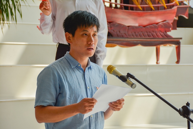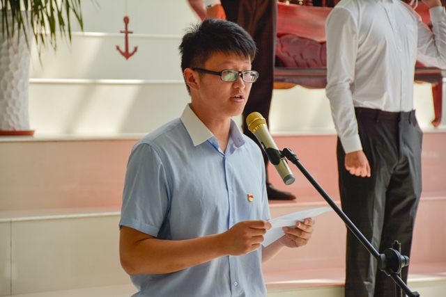 接着,新党员郭英磊代表学生党员发言,“入党宣誓,是我们新党员加入党组织的必经程序,也是我们新党员向党组织表明心声和接受教育的一次极好机会,具有特别的意义。”他结合自身的经历,针对如何发挥先锋模范作用,谈了有几点认识和体会:“一要加强党性修养,坚定理想信念;二要立鸿鹄志,做奋斗者;三要求真务实,知行合一。”