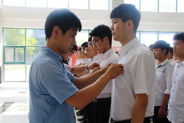 教师党员为新党员佩戴党徽 魏孟吉摄影