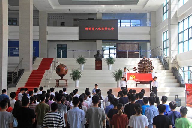 为庆祝中国共产党成立97周年,增强新党员的党性意识,7月1日,化学工程学院组织新党员在工科楼A座大厅举行“七一”入党宣誓仪式,以新党员入党宣誓的形式来为党的生日献礼。出席大会的有学院团委老师、新发展学生党员以及部分师生党员。