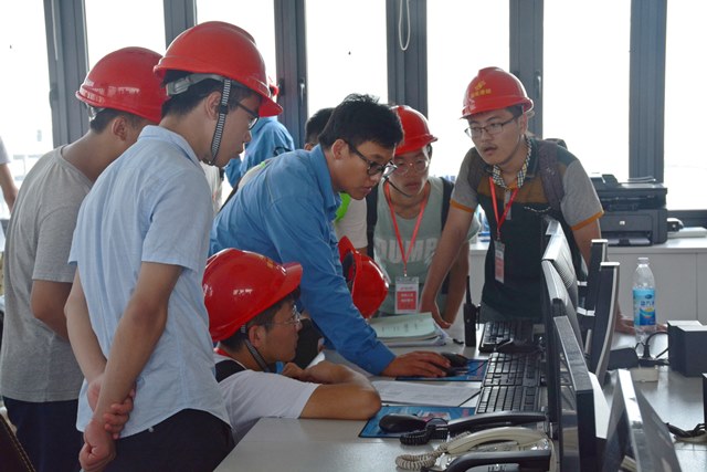 实践队员参观港口储运公司码头控制室 魏孟吉摄影