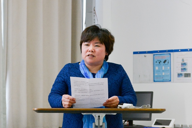 化工系党支部书记丁传芹主持小剧场 李博一摄影