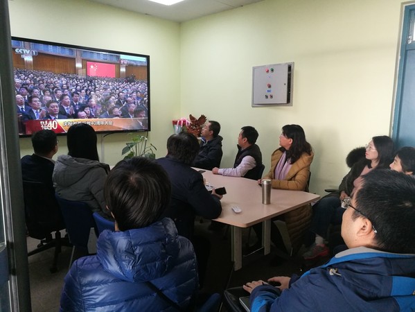 应化系党员与16级博士党支部共同观看了庆祝大会,与会党员纷纷表示,改革开放四十年的中国生机勃勃,国富民强,给我们带来了现在的美好生活。我们应该积极进取,努力拼搏,踏实工作,拥抱更美好的明天。