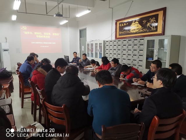 新学期伊始,2月25日下午四点半,化学工程学院装控系党支部在工科楼E411会议室组织开展了“强学习、提站位、深反思、促整改”专题教育活动,会议由装控系党支部书记左海强主持,装控系全体教师参加了此次交流活动。