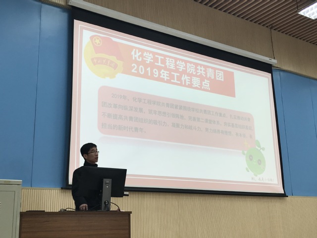 3月15日,化学工程学院团委在南教300教室召开大会。会议传达、学习了学校共青团、学院共青团2019年工作要点,布置推动学院团委新学期重点工作。学院团委委员、团学组织干部、全体本科生和研究生团支部书记、副书记参加了此次大会。