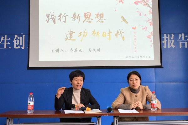 专家风采造就榜样力量,名师点拨成就不悔青春。3月26日下午,化工学院“思美论坛”之——“践行新思想,建功新时代”青春故事分享会于大学生活动中心二楼报告厅举行,山东省五四青年奖章获得者、泰山学者青年专家乔英云老师,泰山学者青年专家、博士生导师吴文婷老师受邀为同学们讲述青春故事,分享成长经验。化工学院辅导员薛慧、买里旦及百余名学生参加本次分享会。