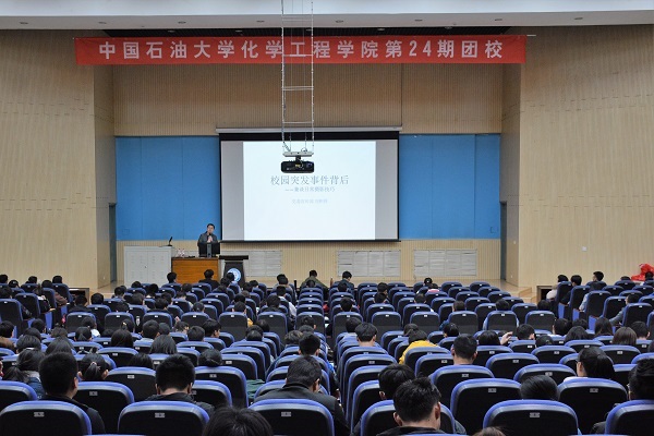 为提升广大青年媒介素养,引导学生理性审视网络舆情,同时帮助学生提高摄影技巧,用多彩的影像传递社会正能量, 3月30日,化学工程学院于南教楼100报告厅举办第24期团校第八讲“校园突发事件背后——兼谈日常摄影技巧”。学校党委宣传部副部长、校报主编、劳动模范刘积舜应邀为我院学生授课。五百余名团校学员参加此次课程。