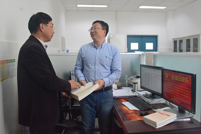 4月17日下午3点,化学工程学院党委书记冯宝鹏、党委秘书叶栋伟等一行人来到逸夫楼226办公室,为生物工程与技术中心党支部书记曲剑波庆祝入党纪念日。
