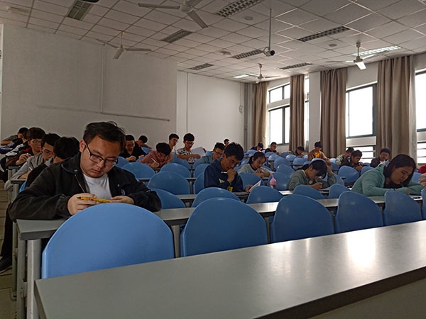 开考前,秦政宣读考试要求、考试规范以及考试纪律等,希望参赛学生能够认真对待,取得好成绩。本次知识竞赛以笔试的方式进行,考题设置选择题、填空题及判断题三种题型。主要涉及学校历史、未来规划、知名校友、所获荣誉等多个方面的知识,考试试题难度逐题上升,从而能加深学生对相关知识的深度掌握,有利于考察学生对学校的了解,同时增强学生对学校的认同感。本次竞赛限时一小时,答题过程中,每位考生都能够严格遵守考试纪律,认真作答,并做到有序离场。