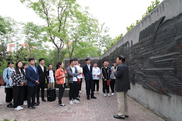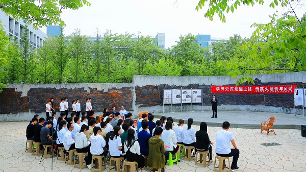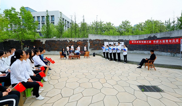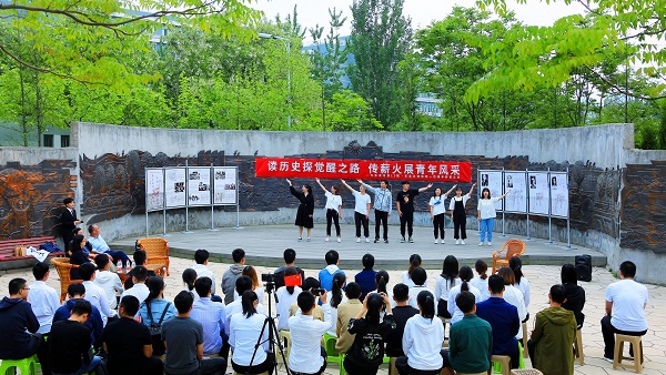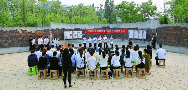 活动以一首合唱《我和我的祖国》拉开序幕。活动以五四运动与新文化运动中的四位代表人物——蔡元培、陈独秀、胡适、鲁迅为主线,通过集体诵读与情景再现的方式,展现四位人物及其代表性文学作品。郑其绪在评价时谈到“我们要更多地去思考,为什么历史人物革命家会在这个特定的时代出现,这是一个怎样的时代,这个时代又留给我们留下了什么”。鲁迅先生的作品《野草题辞》展现一片拳拳赤子之情,蔡元培先生的《告北大学生暨全国学生书》和陈独秀先生的《爱国心与自觉心》则是满满的家国情怀,胡适的《少年中国精神》是对青年人灵魂深处的拷问,时刻警醒着我们锐意进取,不断向前。活动最后,郑其绪带领学生参观浮雕,讲述石油大学从1953年建校以来的故事,激励学生牢记五四精神,昂首前行。