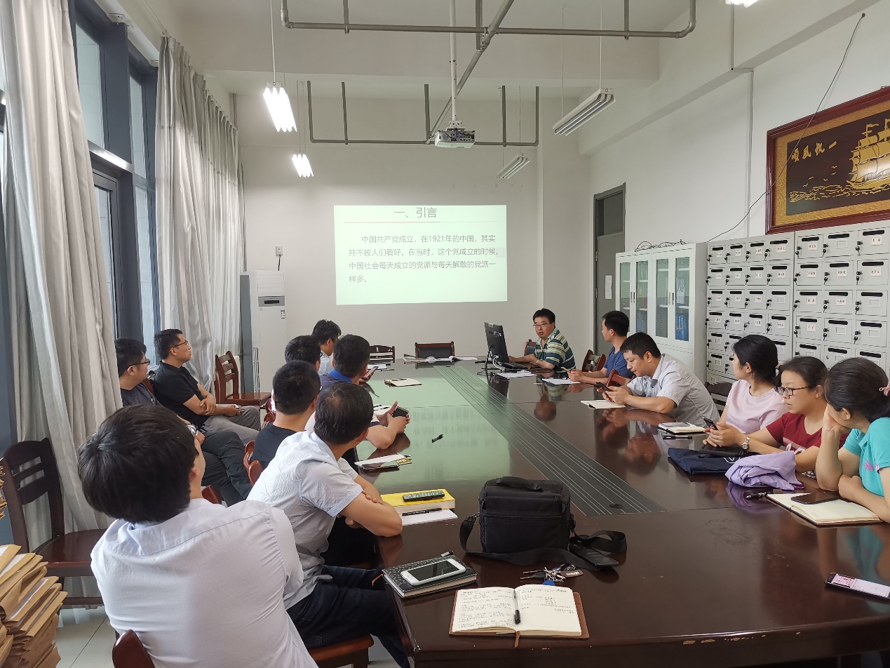 6月27日下午,装控系党支部在工科楼E411开展了庆祝中国共产党成立98周年主题党日活动,党日活动由支部书记左海强主持,微党课“明晰历史-坚持中国共产党领导”由值月党员王宗明主讲。