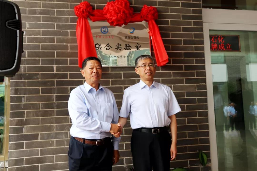 7月11日,yl6809永利检测中心化学工程学院与山东清源集团共建“特种油联合实验室”揭牌仪式在沂水清沂山石化公司举行。山东清源集团董事长马之清、学院院长杨朝合教授共同为联合实验室揭牌。