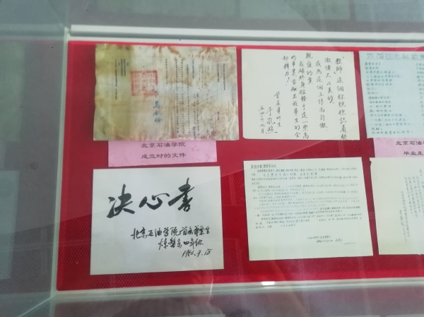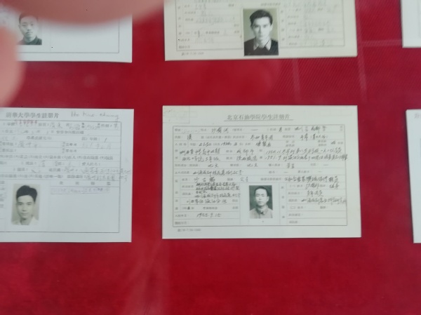 著名校友的学生卡(原件)展览用200余张历史照片、50多件文物、10余件代表性科技产品实物进行了详实展示,展现了66年来学校办学与共和国同向同行的家国情怀,呈现了学校在“双一流”建设进程中取得的辉煌成就,彰显了进入新时代的中国石油大学服务国家能源战略的责任担当。在现场,党员们沿着展区,从北京石油学院的大门走起,一路参观了北京石油学院、华东石油学院、石油大学、中国石油大学四个时期的专题展。石油大院主楼、毛主席雕塑、周总理捐赠的小型机床、毕业生卡片……一件件实物、一幅幅历史照片,一尊尊雕塑,大家认真观摩、热烈讨论,深入了解校史校情、学习习近平新时代中国特色社会主义思想,接受思想政治洗礼。在观展现场,幸遇从学院机关支部退休的老党员谭峰老师,他结合自己在校学习、工作期间的亲身经历,给大家讲解了一些展物背后的故事,为大家上了精彩的一课。大家无不为历代石大人励精图治、追求卓越的精神所感动和鼓舞。