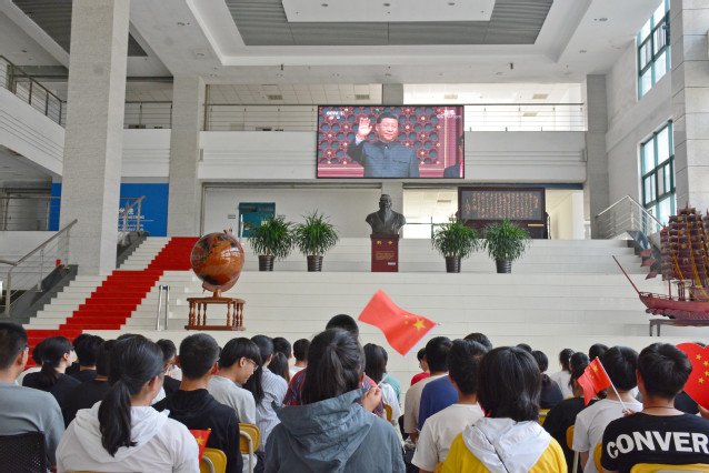 10月1日,学院组织师生收看庆祝中华人民共和国成立70周年大会、阅兵式、群众游行,广大师生对新中国70年来取得的伟大成就感到自豪与骄傲,纷纷表示,要更加紧密地团结在以习近平同志为核心的党中央周围,高举中国特色社会主义伟大旗帜,不忘初心、牢记使命,为实现中华民族伟大复兴的中国梦团结奋斗!