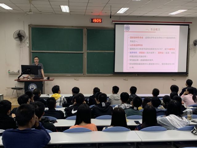 在应化专业介绍会上,李鹏老师鼓励学生们在保证专业课学习的基础上,利用课余时间,积极联系相关专业老师了解科研工作,进行一些科研和实践活动,提升个人能力。