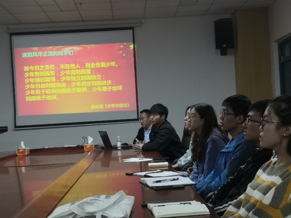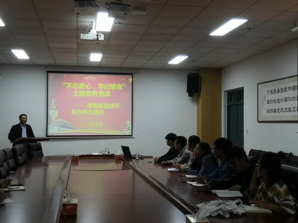 为扎实推进“不忘初心、牢记使命”主题教育,学习教育常态化制度化,着力构建“三全育人”格局。10月28日,学院机关党支部书记淡天俊为研究生化工第三学生党支部讲授题为“厚植家国情怀,勇作有为青年”主题党课,支部全体党员、入党积极分子参加了党课。