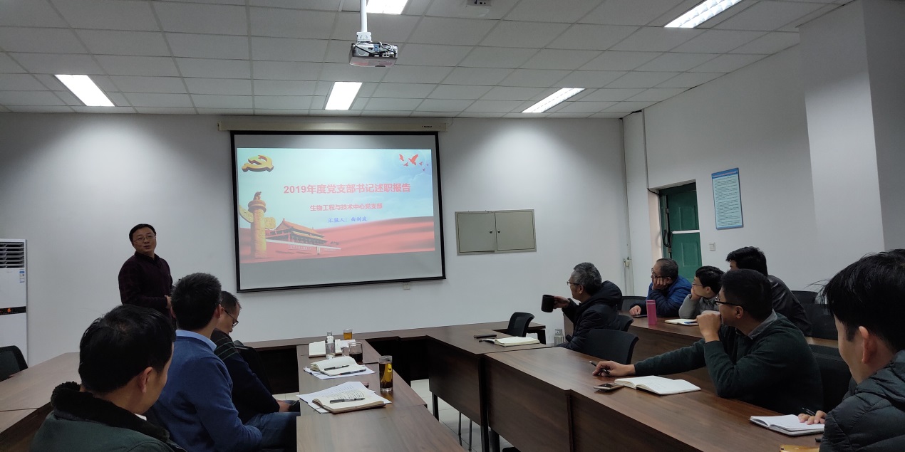 会议伊始,曲剑波代表党支部向全体党员汇报了生物中心党支部2019年度的党建工作开展情况。在汇报中,他就“生物中心党支部基本情况”、“2019年度生物中心党建工作”、“不忘初心、牢记使命”的学习教育情况”、“工作中存在的问题与不足”以及“2020年度重点工作安排”等情况做了详细介绍。曲剑波指出,生物中心党支部2019年度各项党建工作有序开展,都取得了良好的效果,尤其是在“不忘初心、牢记使命”的主题活动中,教师党支部和研究生党支部联合开展了一系列活动,既加强了理论学习,也增进了师生间的感情。在党支部成员对党支部工作进行评价的环节,大家纷纷对支委会的工作点赞,同时也对工作中存在的不足以及2020年度的工作安排提出了自己的意见和要求。